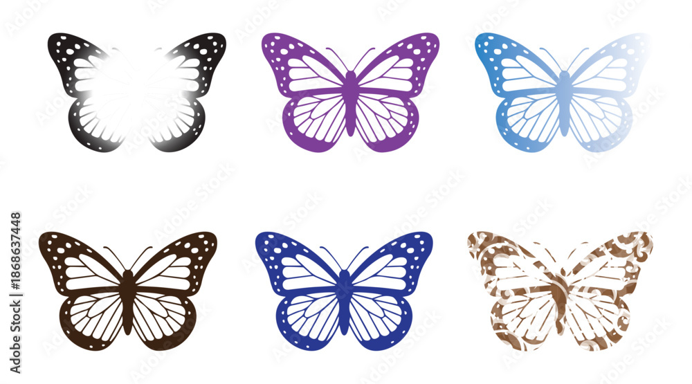 • Abstract butterfly vector graphics vibrant colors gradient and solid filled shapes modern insect design set art