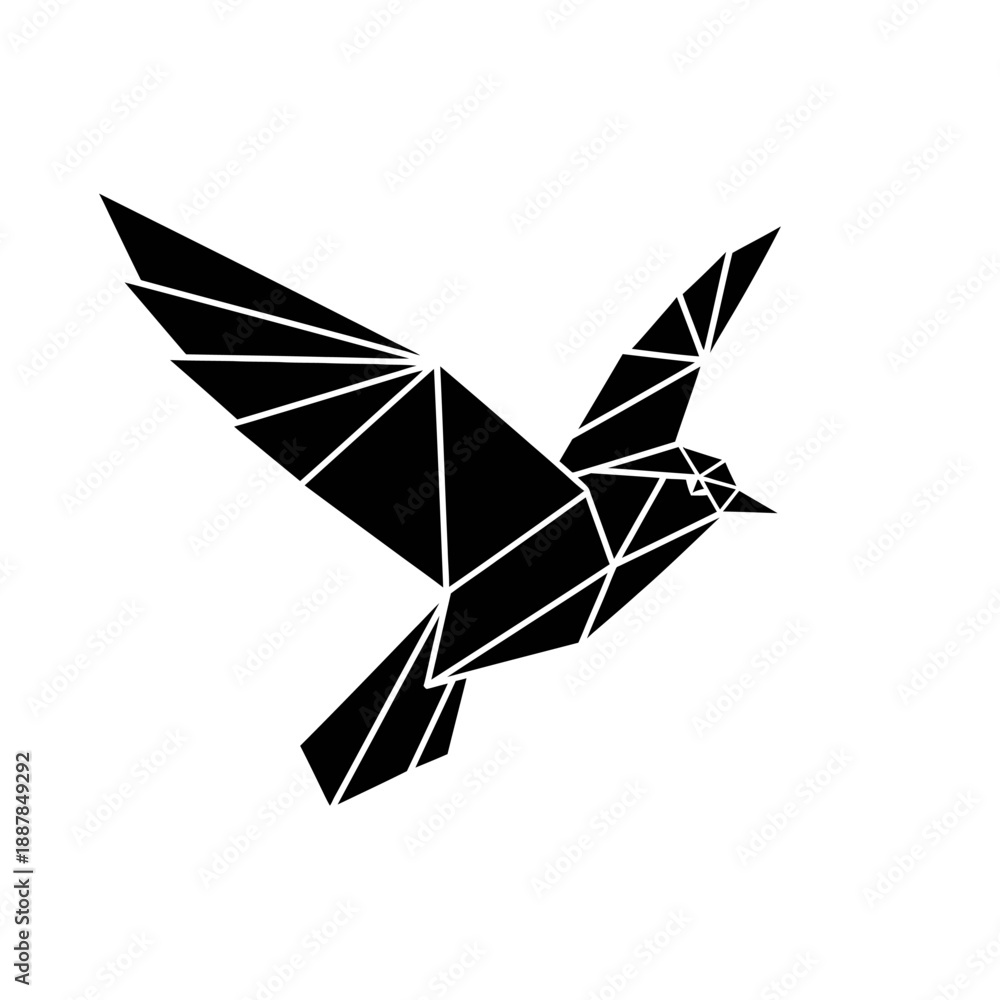 Zwierzęta geometria - Black bird in flight polygonal style. #1887849292