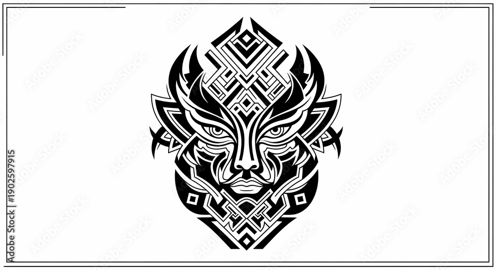 • 黒色デザインアートワークで表現された幾何学的な抽象の動物の顔
