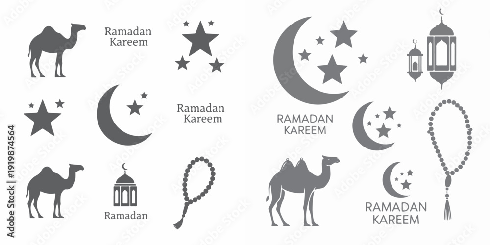 • Set of Islamic animal silhouette vector icons with Ramadan vibes featuring decorative symbols and spiritual elements