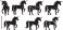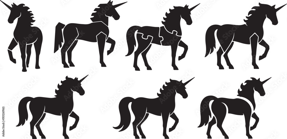 • Black Solid Abstract Geometric Unicorn Silhouettes Set of Six on White Background