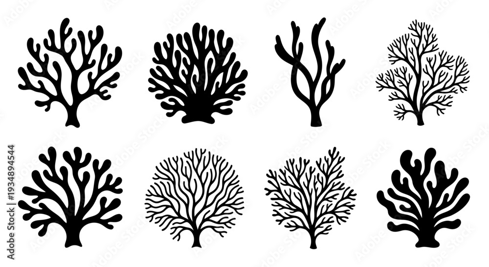 Zwierzęta geometria - Collection of black coral silhouettes with branching shapes. #1934894544
