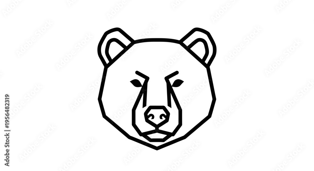 Zwierzęta geometria - Minimalist line art drawing of a bear's head with geometric features on a white background. #1956482319