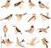 Geometrical birds. Abstract stylized shapes of freedom flying bird in various action poses recent vector illustrations