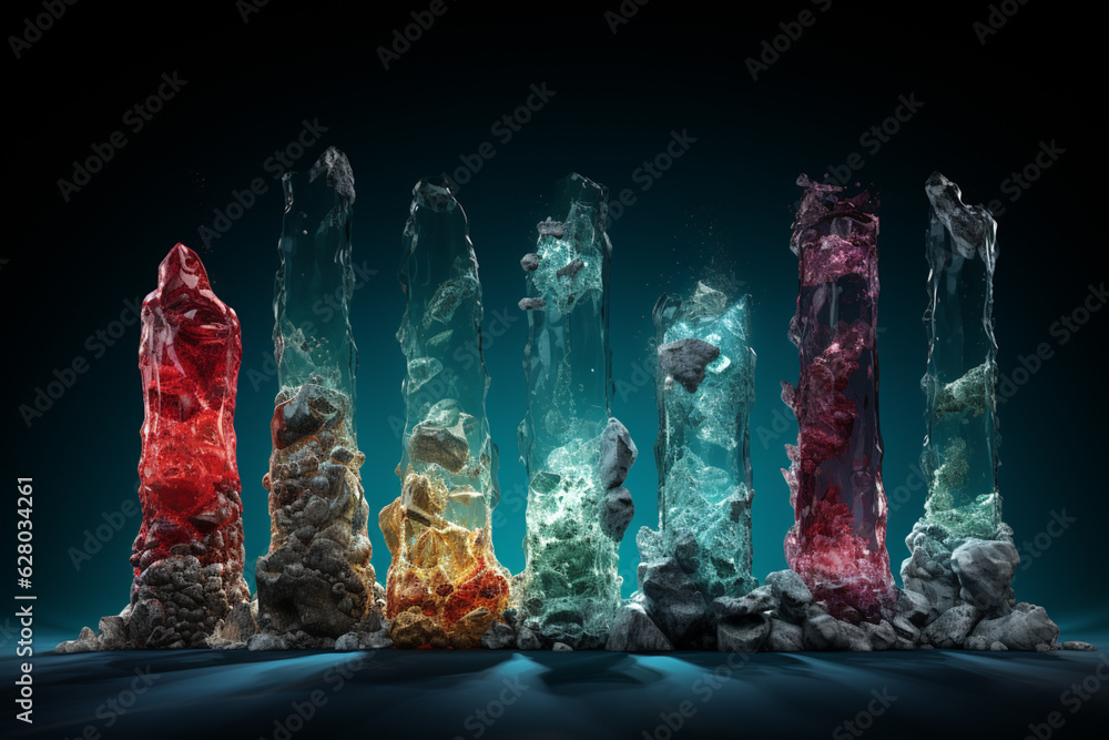 • lifecycle of an iceberg, from its formation in a glacier to its eventual journey into the open ocean, symbolizing the circle of nature. Generative AI technology.