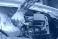 • Naprawa akumulatora samochodowego – męska dłoń dokręcająca klemę kluczem w komorze silnika