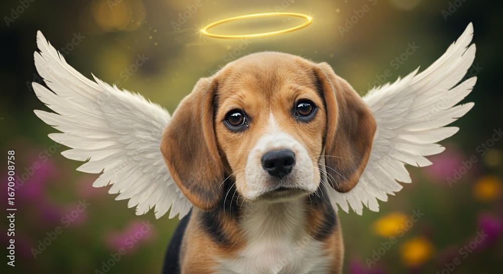 Anioł - Adorable beagle puppy with angel wings #1670908758
