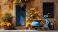 • sztuka komputerowa przedstawiajaca klasyczny skuter na wluskiej uliczce,