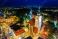 Naklejki Panorama - Rynek miasta, zabytkowy noca z lotu ptaka wraz z ratuszem i kamienicami oraz bazyliką mniejszą i... #507791264