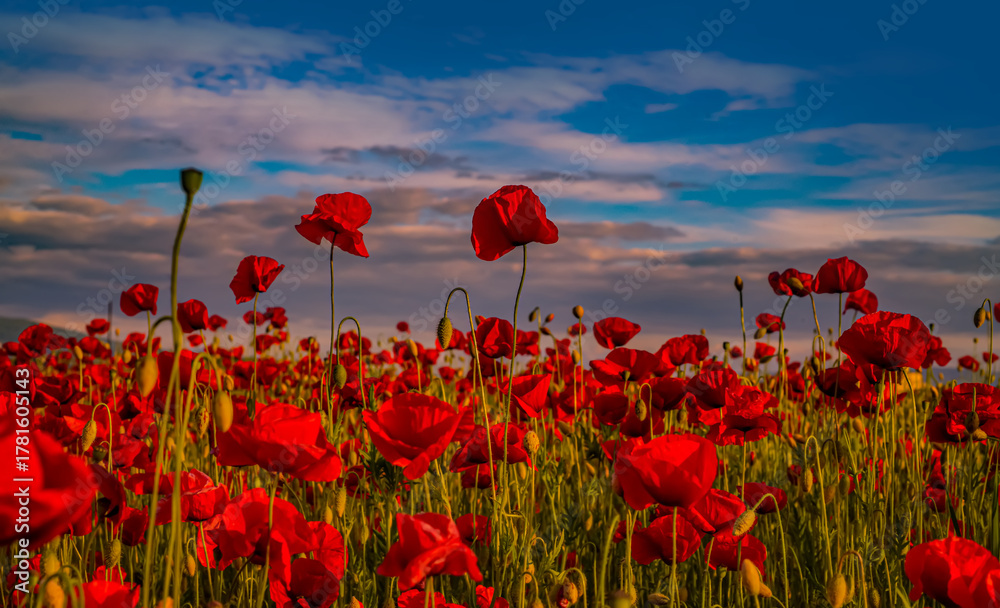 Plakat Folklor - Anzac day banner. Remember for Anzac, Historic war memory. Anzac background. Poppy field,... #1781605143