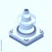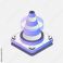 • Isometric 3D cone with rotating rings on a tech platform in gradient purple-blue tones.
