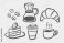 • Coffee and bakery breakfast set doodle vector illustration