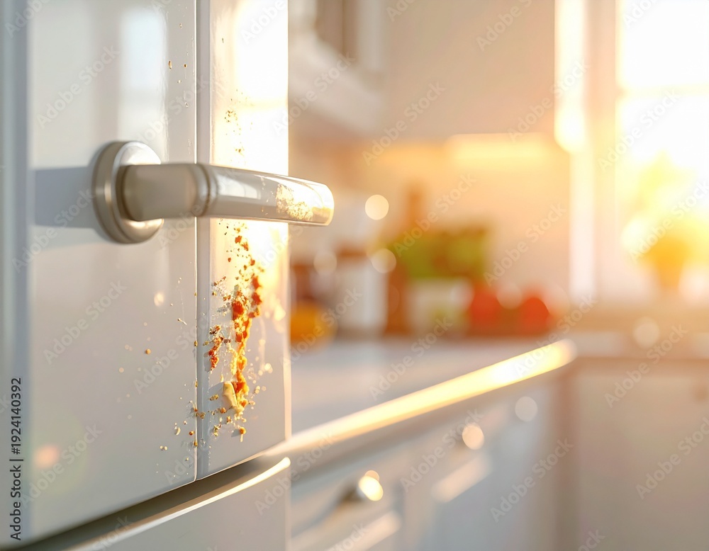 Plakat Plamy - Plama na drzwiach lodówki w kuchni - zabrudzenia #1924140392