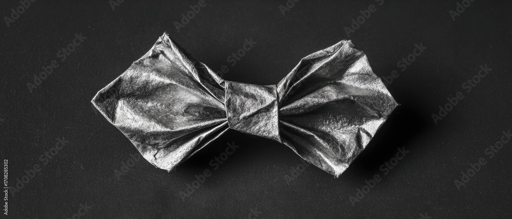 Plakat Origami - Close-up grayscale image of a meticulously folded origami bow tie. The dark background enhances... #1708285302