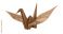• Red paper origami crane with clean folds displayed on a white background at a crafts event