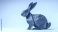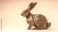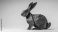 • A red origami rabbit sits on a light gray background, showcasing its folded paper form.