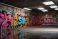 • Empty underground parking with graffiti wall abstract background. Idea for artistic pop art background backdrop. Empty open space interior background
