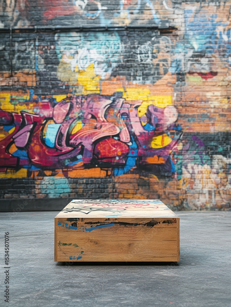 Plakat Street Art - Empty display podium in an urban space with graffiti walls. Street art, youth culture concept... #1534507076