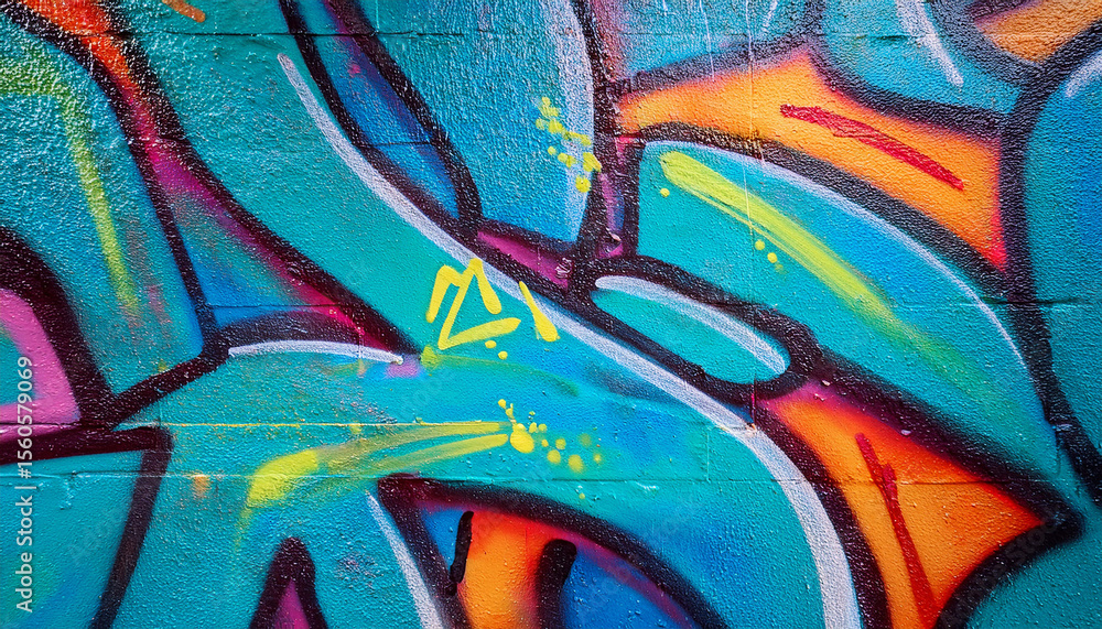 • abstract graffiti with vibrant colors on turquoise textured wall vintage 80s funky style urban expression street art creative backgrounds vivid visuals modern 80s urban design