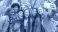 • A group of young adults taking a selfie in front of a colorful graffiti wall.