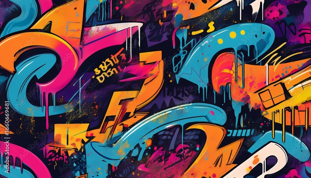 Plakat Street Art - urban street art seamless pattern with graffiti style lettering and bold splashes #1660669681