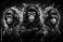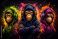 • Three cool monkeys in hoodies and headphones, graffiti art style with colorful splashes
