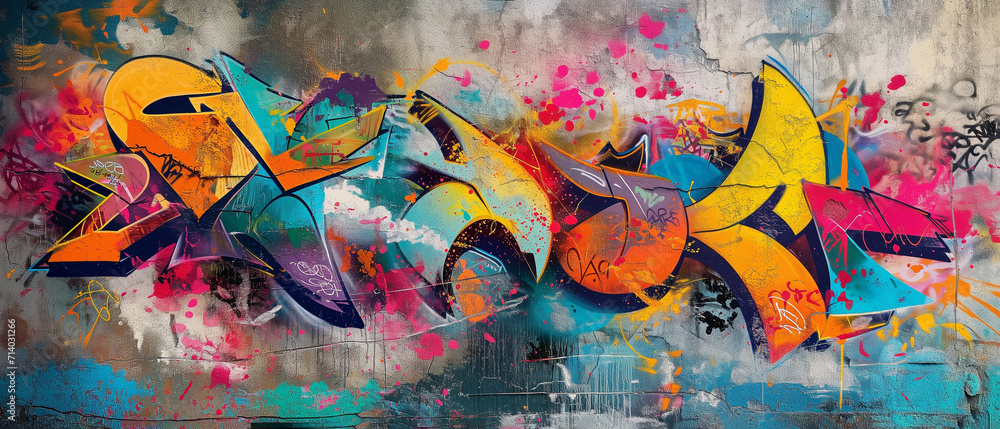 Plakat Street Art - Colorful artistic graffiti wall abstract background created with Generative AI. #714031266