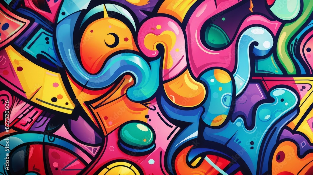 Plakat Street Art - Vibrant graffiti style art with bold colors and urban street design elements #827320606