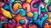 • Vibrant graffiti style art with bold colors and urban street design elements