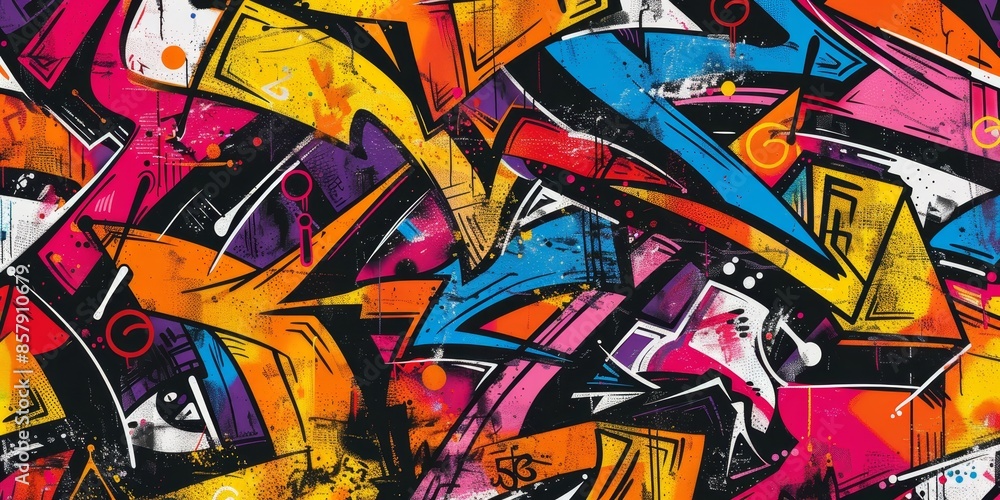 Plakat Street Art - Abstract urban graffiti on the wall close up, graffiti background #857910679