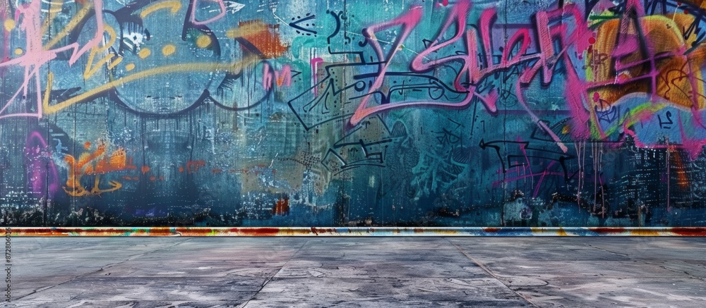 Plakat Street Art - Colorful urban wall graffiti banner background. Creative city street art background on wall.... #872806036