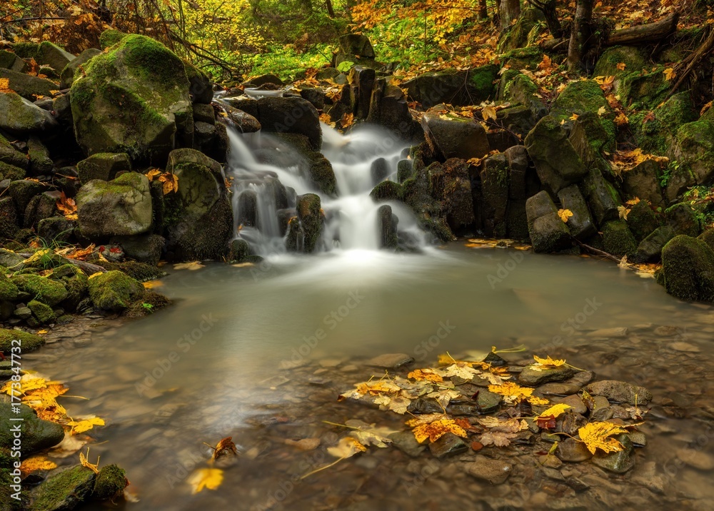 Plakat Kamień - Jesienny widok na wodospady potoku Głębieniec w Gorcach #1773847732