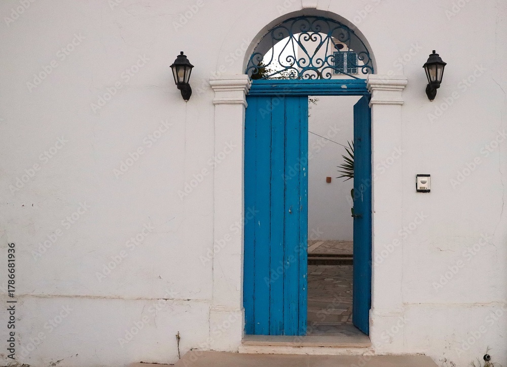 Plakat Kamień - stare drzwi w miasteczku Mahdia, Tunezja. #1786681936