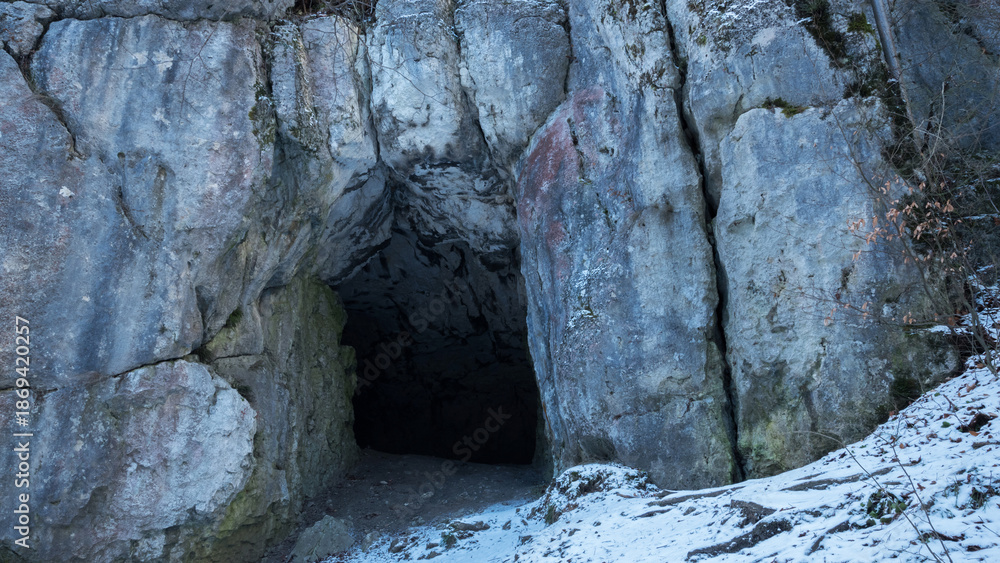 Plakat Kamień - jaskinia w Straszykowej górze zimą #1869420257