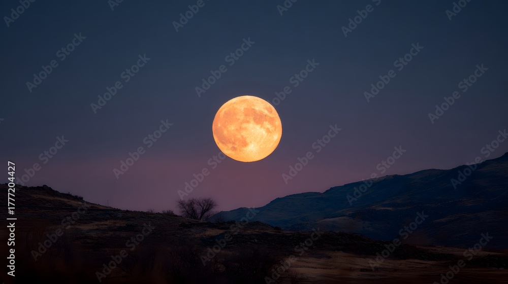 Plakat Kosmos - Goldener Vollmond über Hügeln bei klarem Nachthimmel #1777204427
