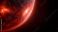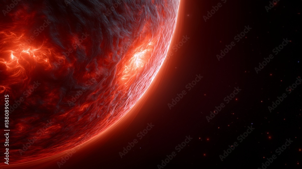 • Leuchtend rote Sonne in entferntem Sonnensystem im Weltraum