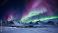 • Spektakuläre Polarlichter über einer verschneiten Gebirgskette bei Nacht