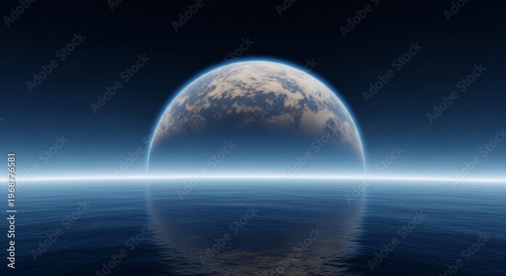 Plakat Kosmos - Planet rising over ocean horizon #1968776581