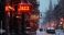• Zimową ulicę miasta, na której znajduje się świecący neonowy znak klubu jazzowego. Światła oświetlają śnieżną scenerię, tworząc kontrast między zimowym krajobrazem a ciepłym blaskiem neonu.
