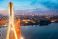 • Most Świętokrzyski i centrum Warszawy o zachodzie słońca, widok z lotu ptaka