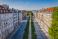 • Dolne Miasto district in Gdańsk. Beautiful streets, old buildings, the Motława River. Morning.