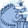 Bajki - Zabawny potwór niszczący miasto, kreskówkowa ilustracja pełna humoru i kolorowego chaosu #1955127374