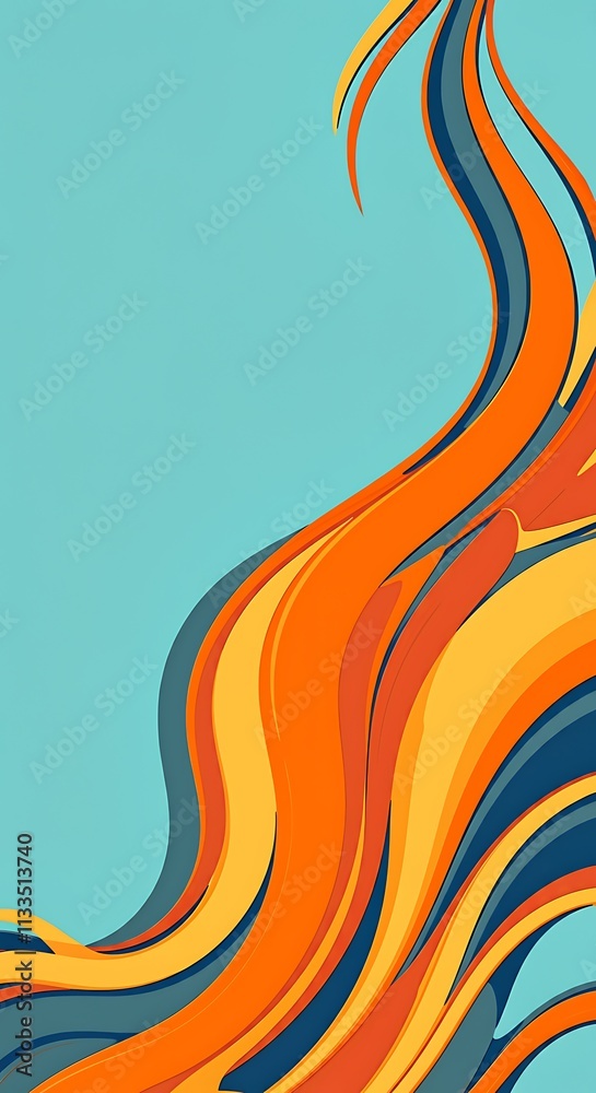 • Vibrant orange teal abstract wave design colorful curved stripes pattern background