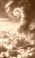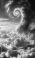 • Swirling clouds create a mesmerizing spiral pattern in the blue sky above a vast landscape