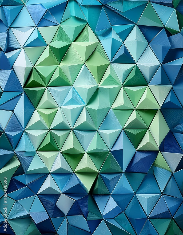 • Abstract 3D geometric pattern in shades of blue and green.