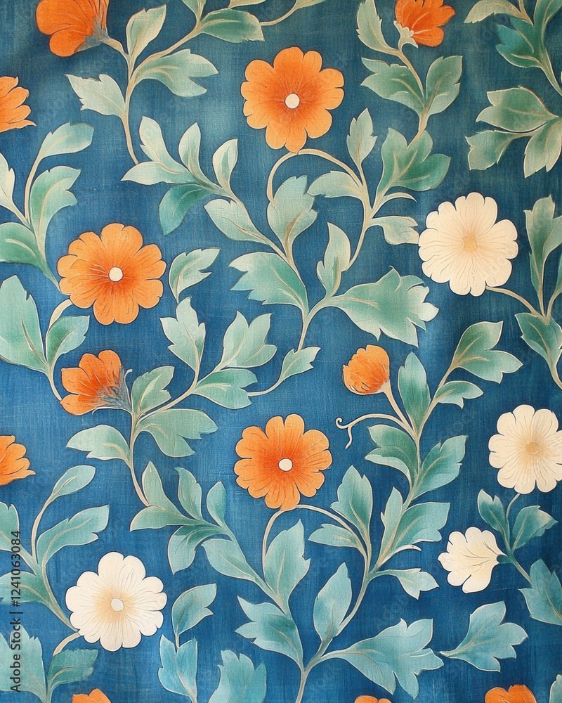 Fiolet - Vibrant floral pattern with orange and white flowers on blue background #1241063084