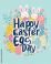 • Vibrant Happy Easter typography with floral patterns, cheerful seasonal greeting card design symbolizing renewal and festivity