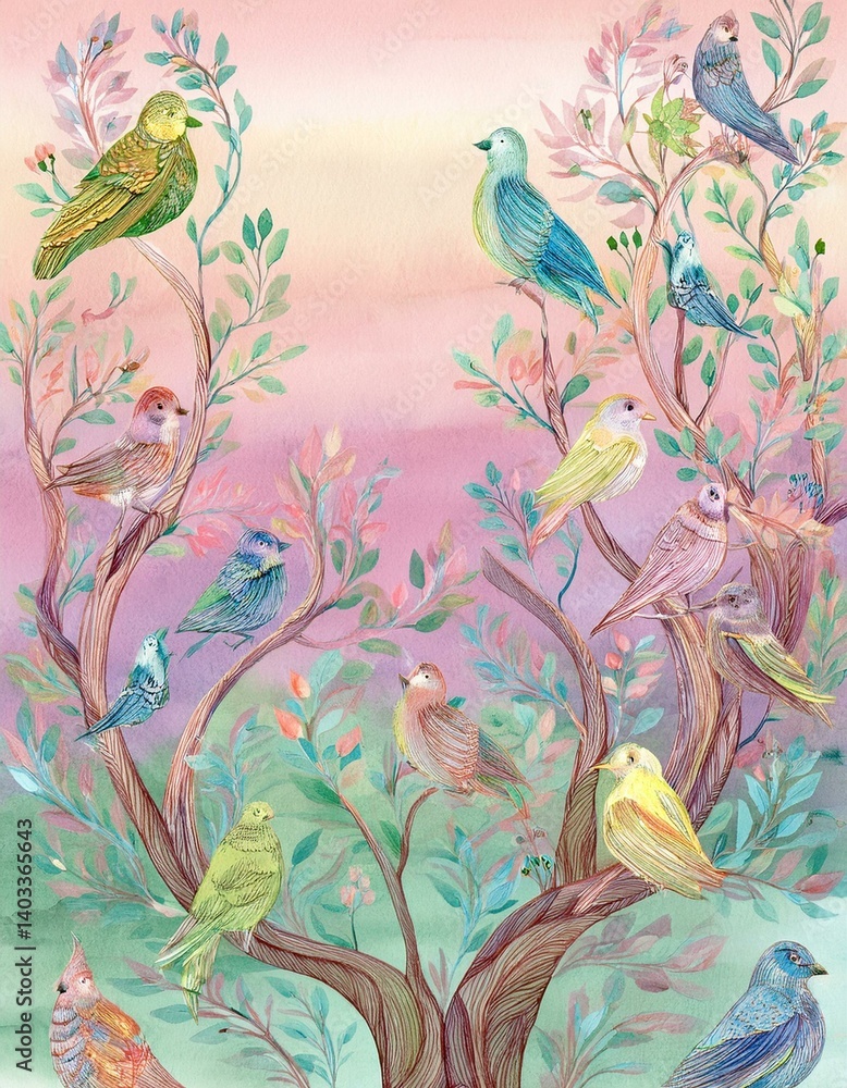 Fiolet - seamless floral pattern with birds #1403365643