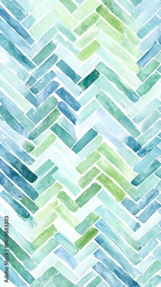 • Seamless watercolor herringbone pattern in soft blues and greens with hand-painted textures and organic brushstroke variations Generative AI