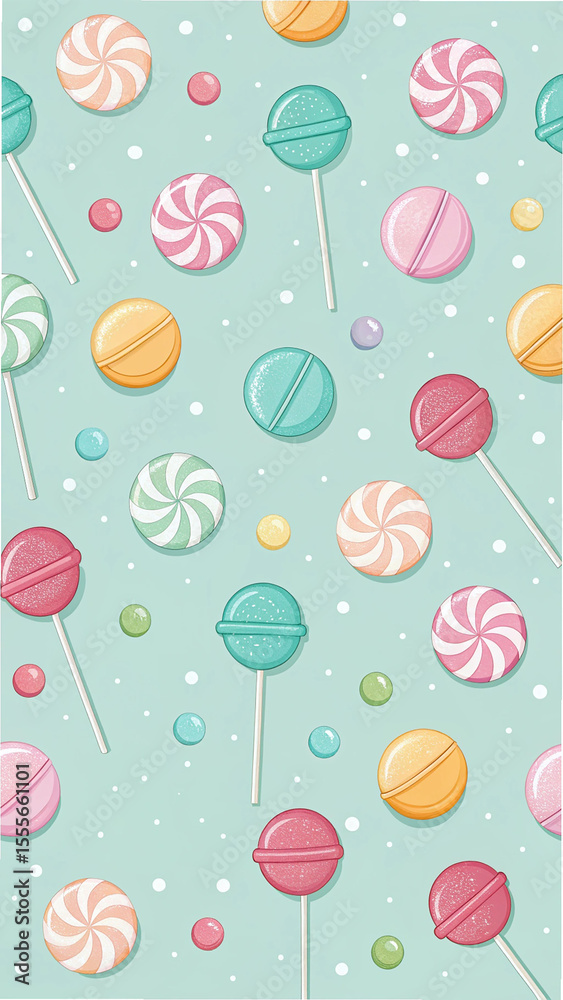 Fiolet - Pastel lollipop and candy pattern on a light blue background #1555661101